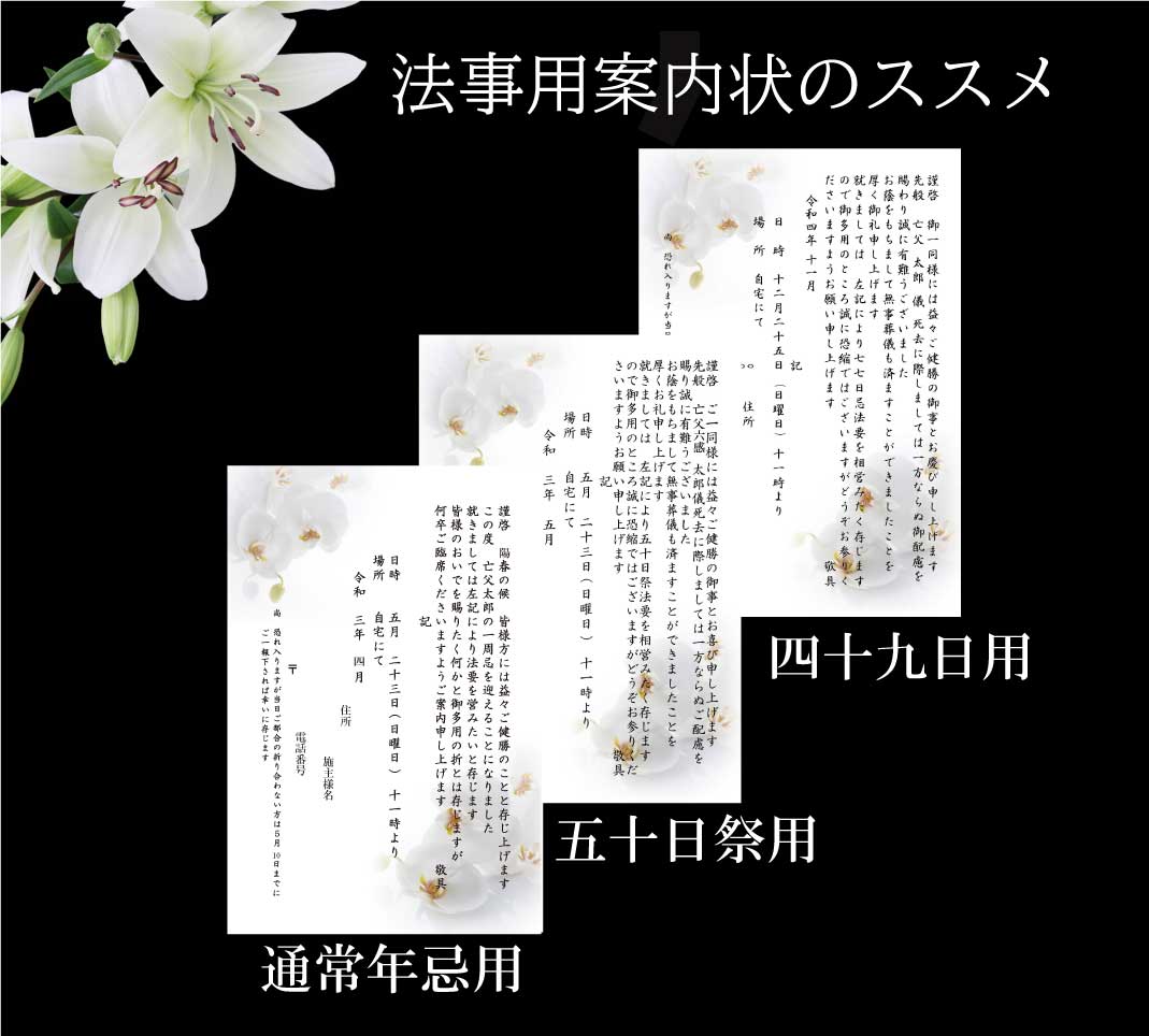 葬儀から四十九日まではお時間が限られます。できる限り、法事日の二週間前にはお手元に届くよう制作・投函スケジュールを整えます。