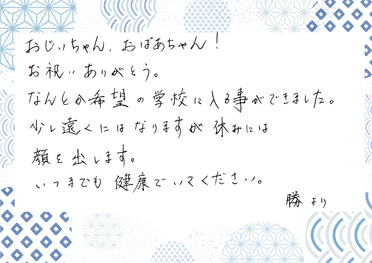- このたびは新しいスタートを お祝いいただき まことにありがとうございます
